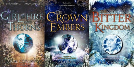 Aside from Elisa, I enjoyed the world-building, and the chance to pretty thoroughly explore that world as Carson pilots her cast all around it. Well-realized characters populate every corner, and the three individual story arcs are just as satisfying as the overarching plot. Basically, Carson has come pretty darn close to writing a perfect YA Fantasy series. She’s certainly captured most of what I’m looking for in a book!